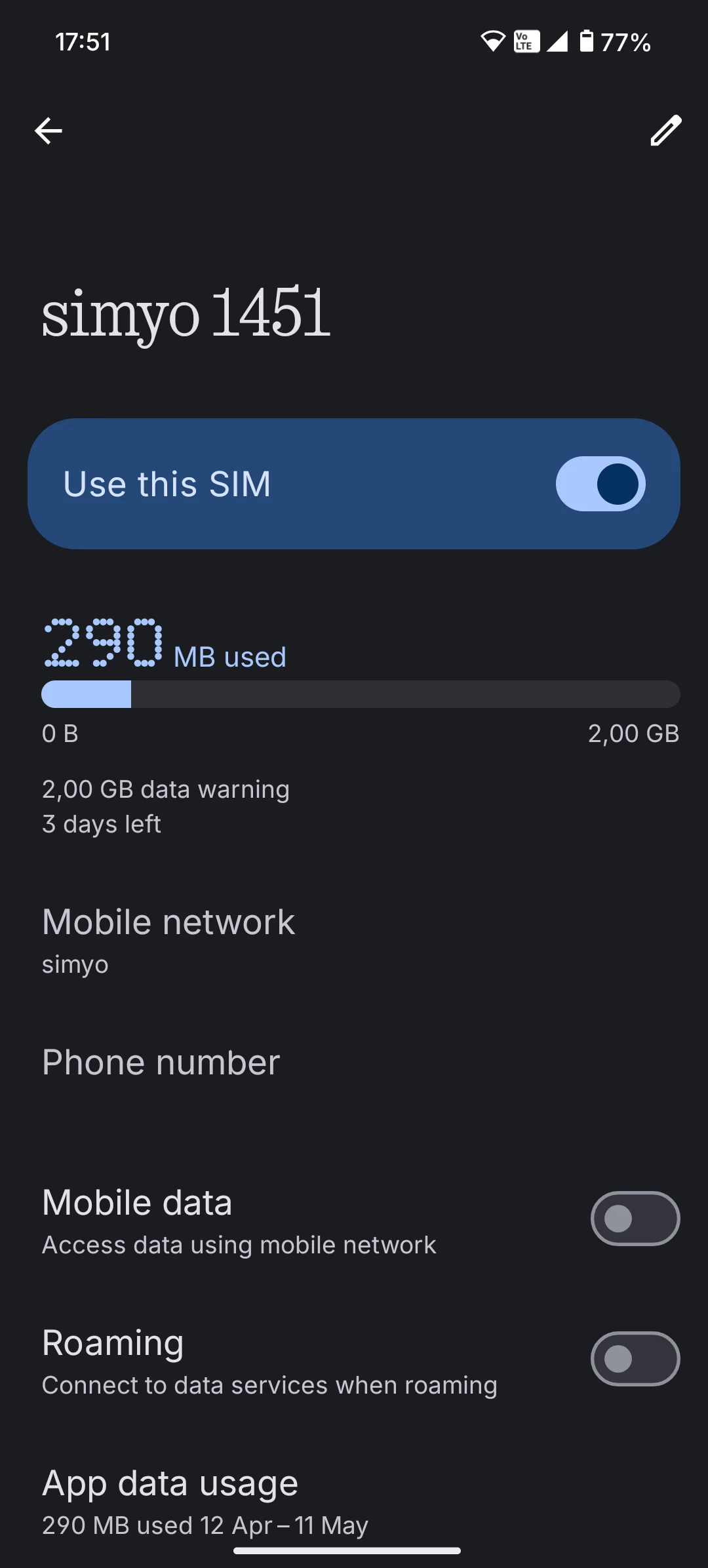 Zie hetvolgende screenshot van mijn telefoon instellingen onder Network & Internet > SIMs >