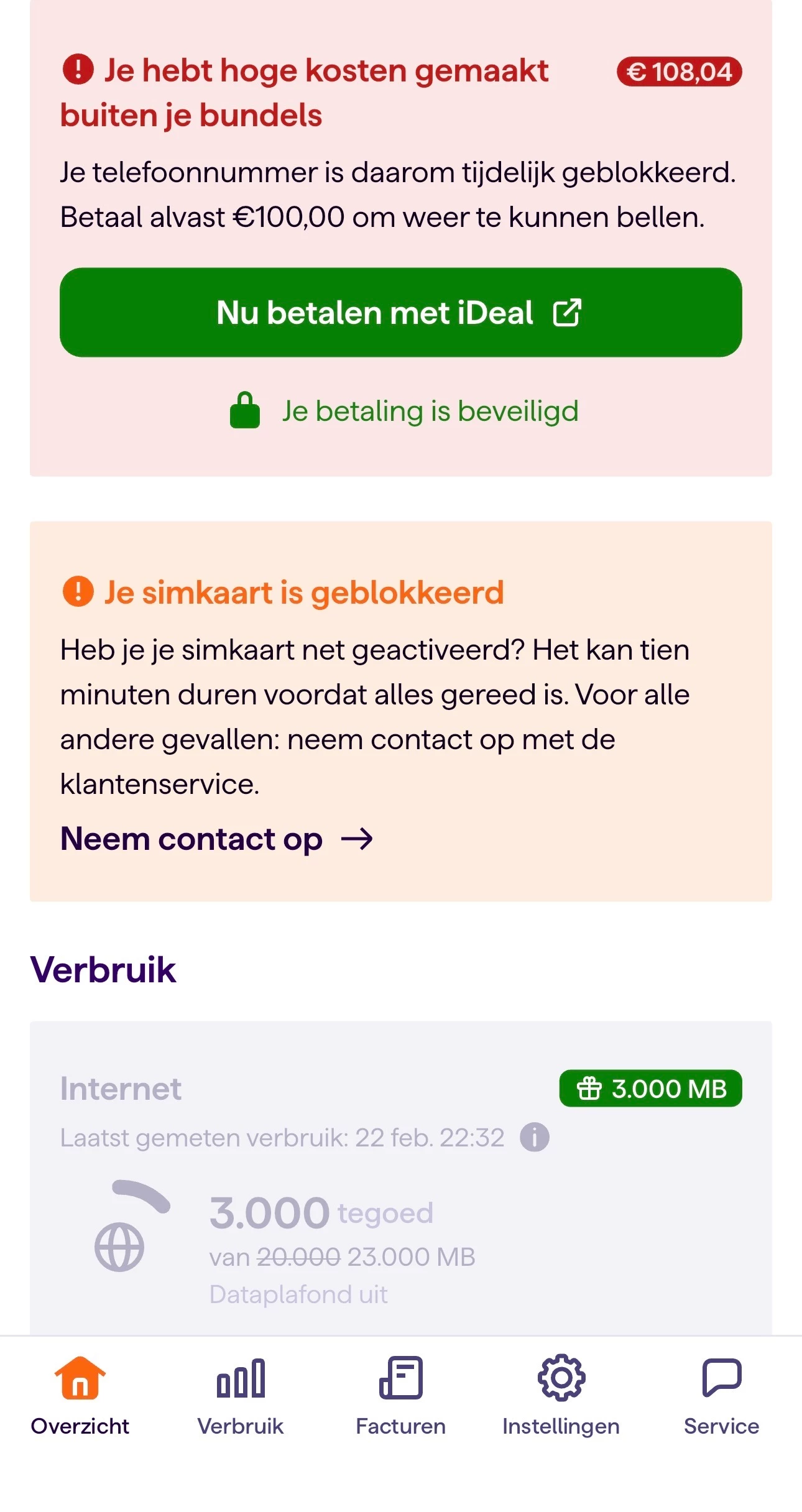 Ik heb dus op tijd een aanvullende bundel geactiveerd om kosten te voorkomen. Mijn sim is nu geblokkeerd, dus bellen kan niet. Kunnen jullie dit nakijken en deze kosten corrigeren?