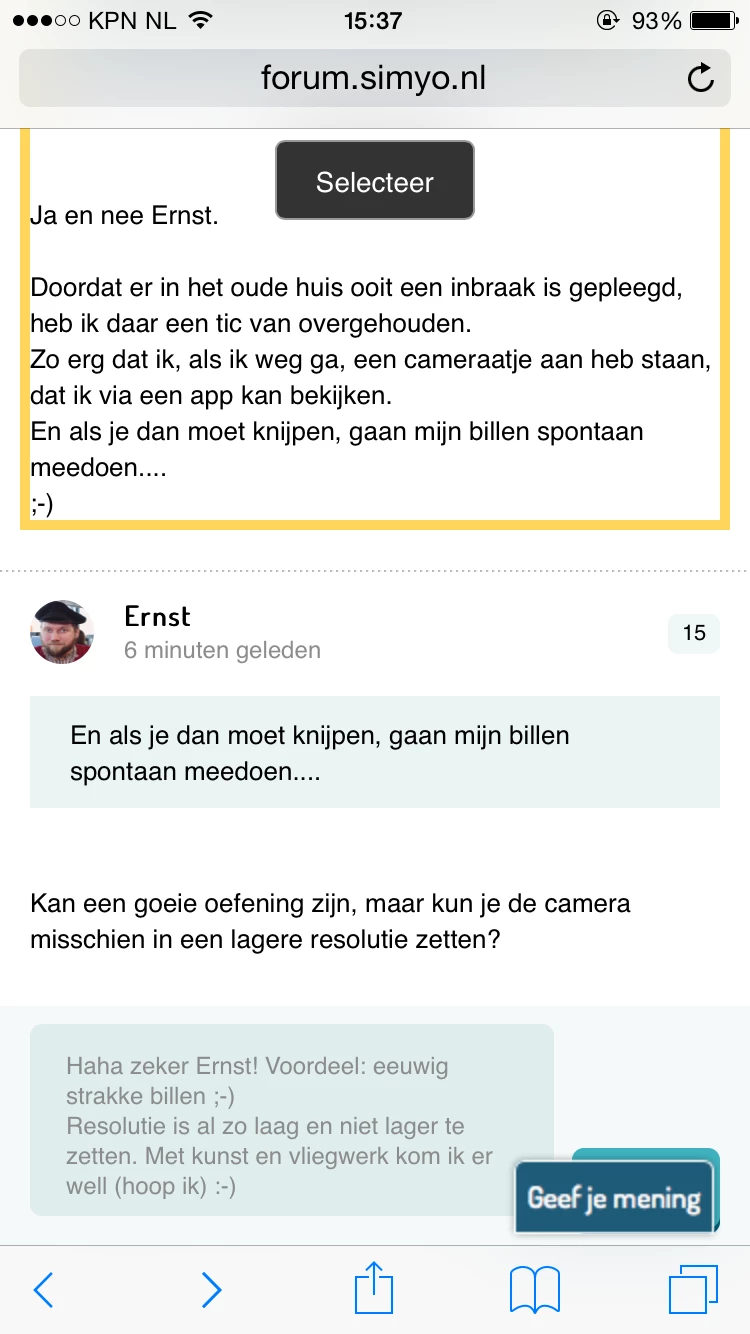 Had al een antwoord getikt op mijn iPhone, maar kon het niet verzenden, omdat er een "Geef je mening" rechthoekje bovenop "Plaats" staat. Wat ik ook doe, ik krijg het antwoord niet verzonden.