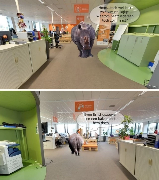 Heel origineel Renoster, en leuk gemaakt.