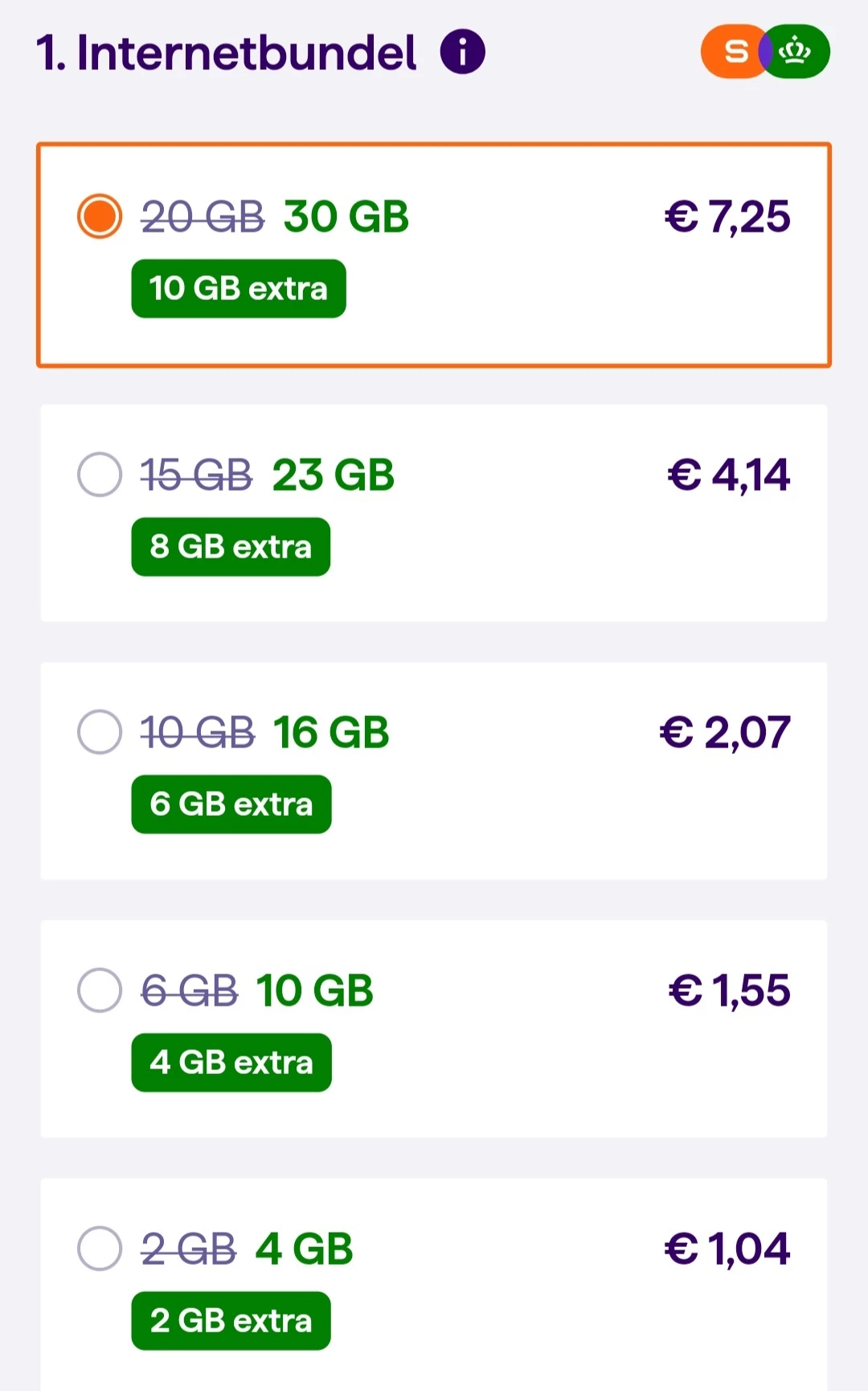 Beste ​@BuffaloBill als je tevens KPN thuis hebt wordt de 30GB-bundel verhoogt naar 40GB bij de huidige aanbiedingen.