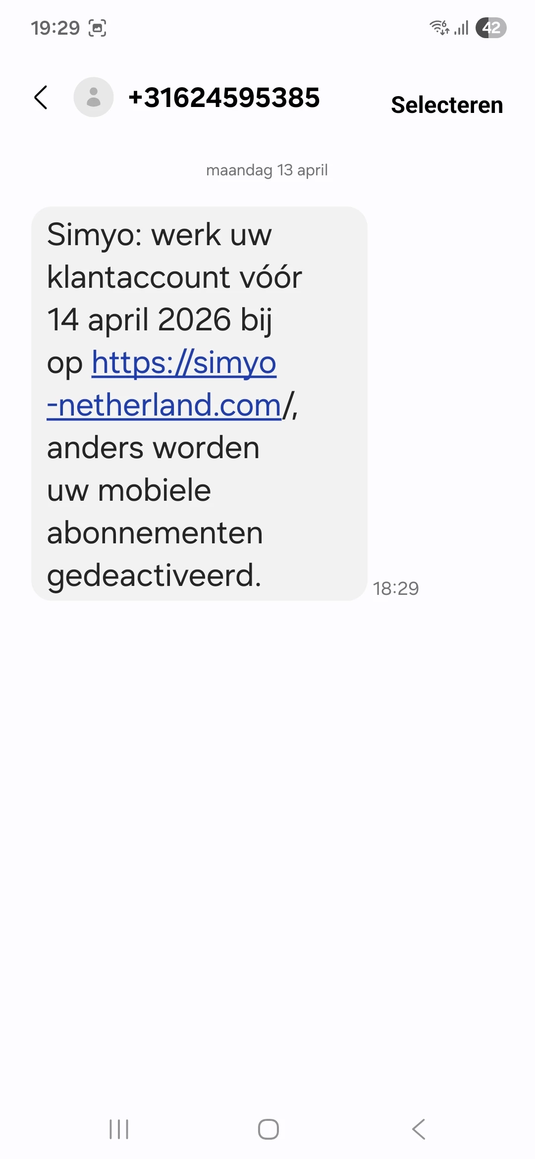 Geachte klant, uw simkaart dient opnieuw geverifieerd te worden. Doe dit voor 12-08-2025 om blokkade te voorkomen via: https://simkaart-heractiveren.digital/