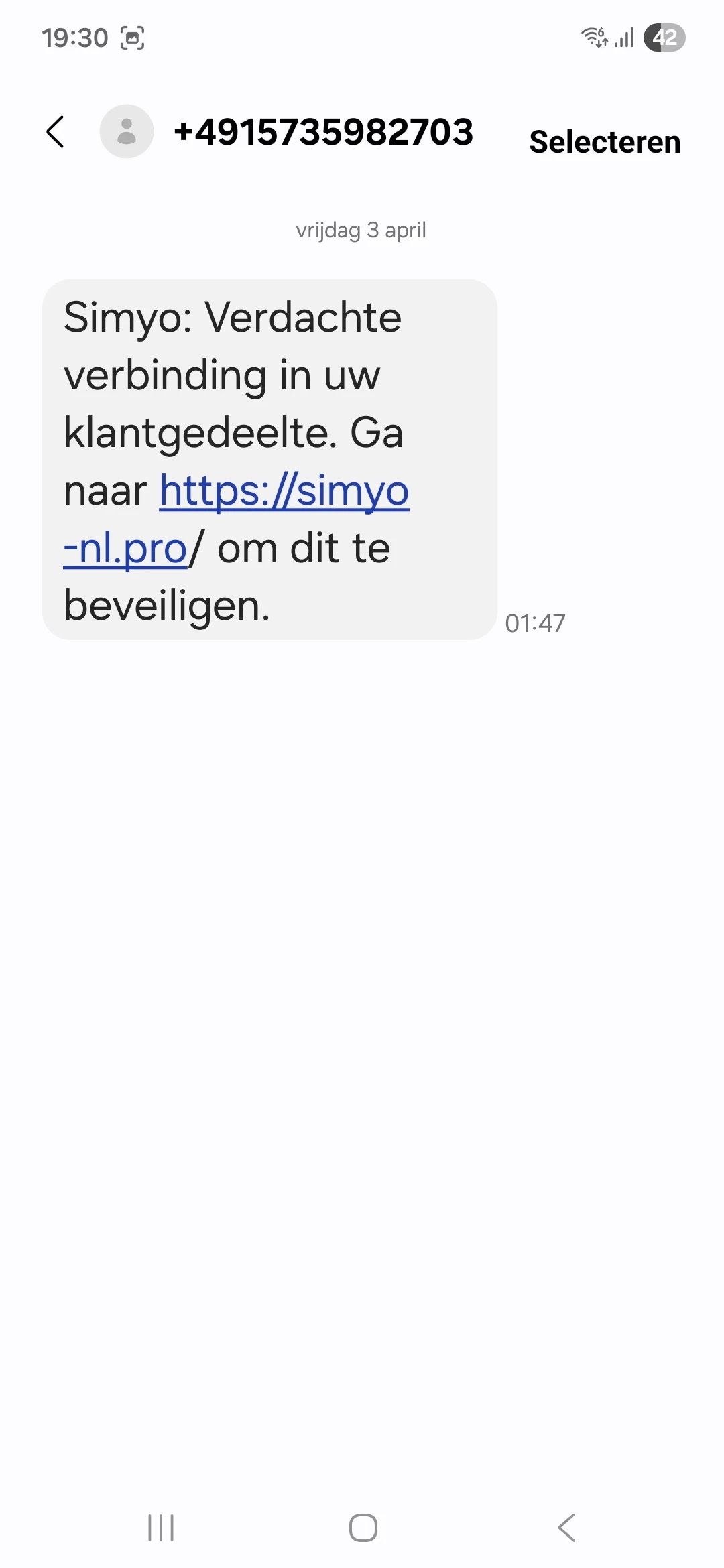Dit kwam onlangs via de berichtenservice binnen op mijn mobiel.