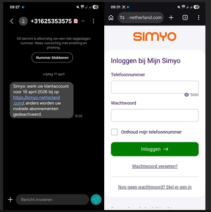 We willen jullie graag waarschuwen voor phishing‑sms’jes die op dit moment in omloop zijn. We krijgen signalen dat er sms’jes worden verstuurd die lijken alsof ze van Simyo komen, maar dat niet zijn. In dit topic zie je een screenshot van zo’n sms, zodat je weet waar je op moet letten.