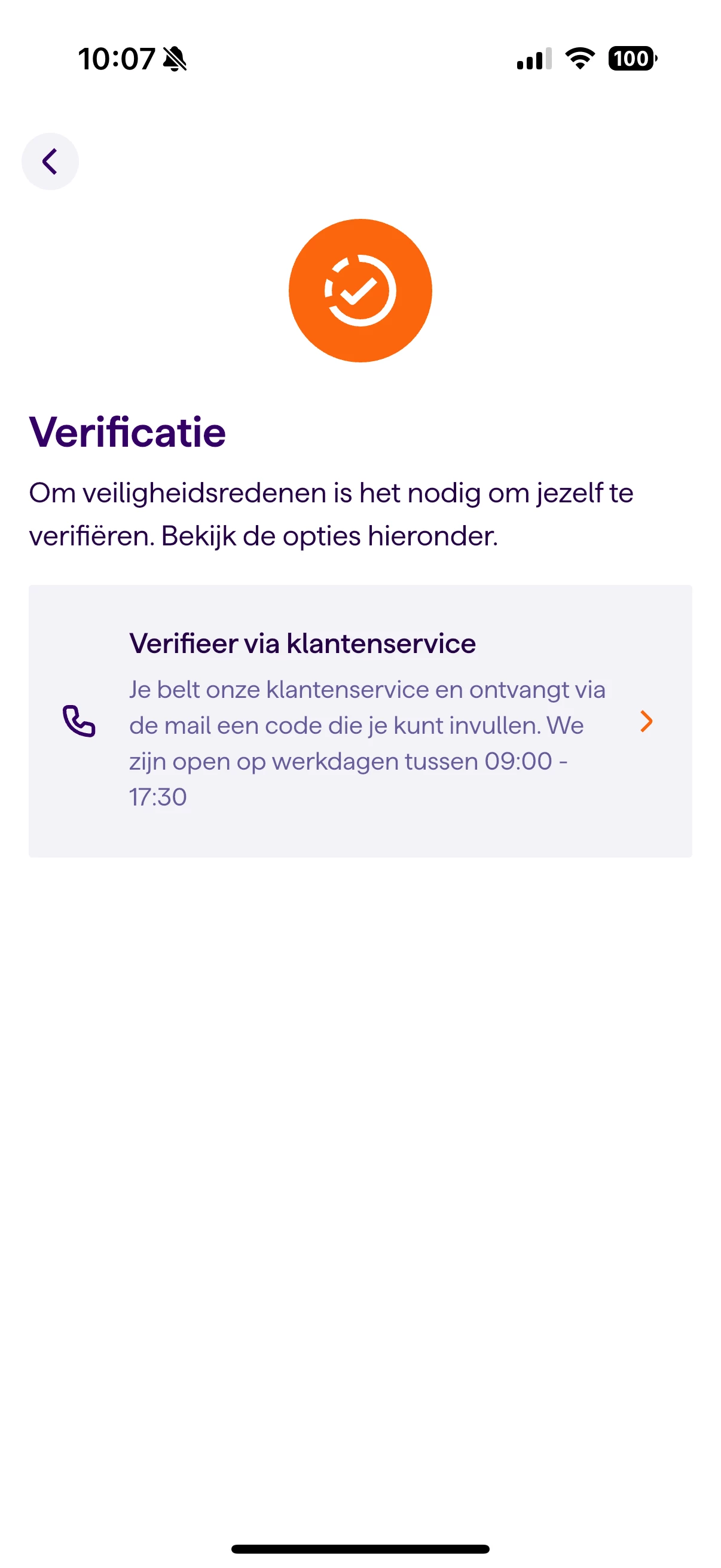 Ik probeer mijn eSIM over te zetten naar mijn nieuwe telefoon, maar de enige optie die ik krijg is een verificatie via een telefoontje naar het nummer van Simyo? Daarnaast kan dit alleen op werkdagen dus kan dit vandaag dus niet, ik krijg ook geen andere optie zoals via een SMS of iDEAL-betaling. Zie foto. En ik wilde de installatie graag vandaag klaar hebben.