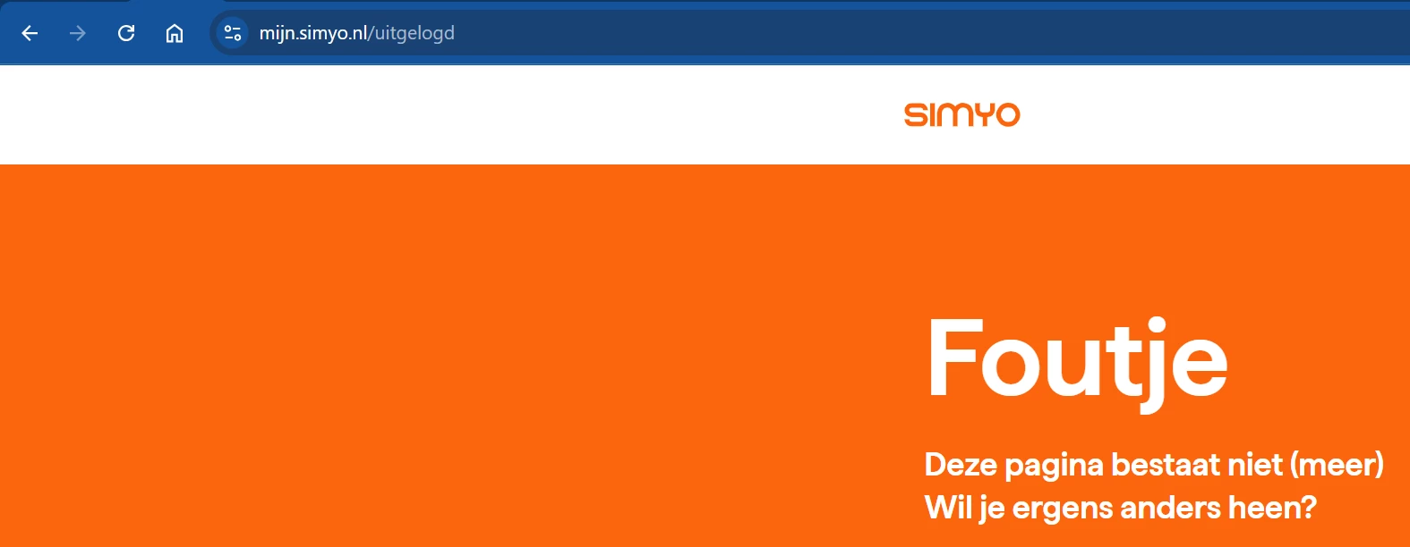De “Mijn Simyo”-app wil waarschijnlijk de link naar de inlog pagina van Mijn Simyo in zich openen, maar dat werkt natuurlijk niet. Als je dat naar op inloggen klikt en dan vraagt de browser (veelal eenmalig) of je mijn.simyo.nl in de Mijn Simyo app wilt openen. Doe je dat, dan krijg je dit probleem. Doe je dat niet, dan krijg je ofwel veelvuldig die vraag of werkt het wel goed.